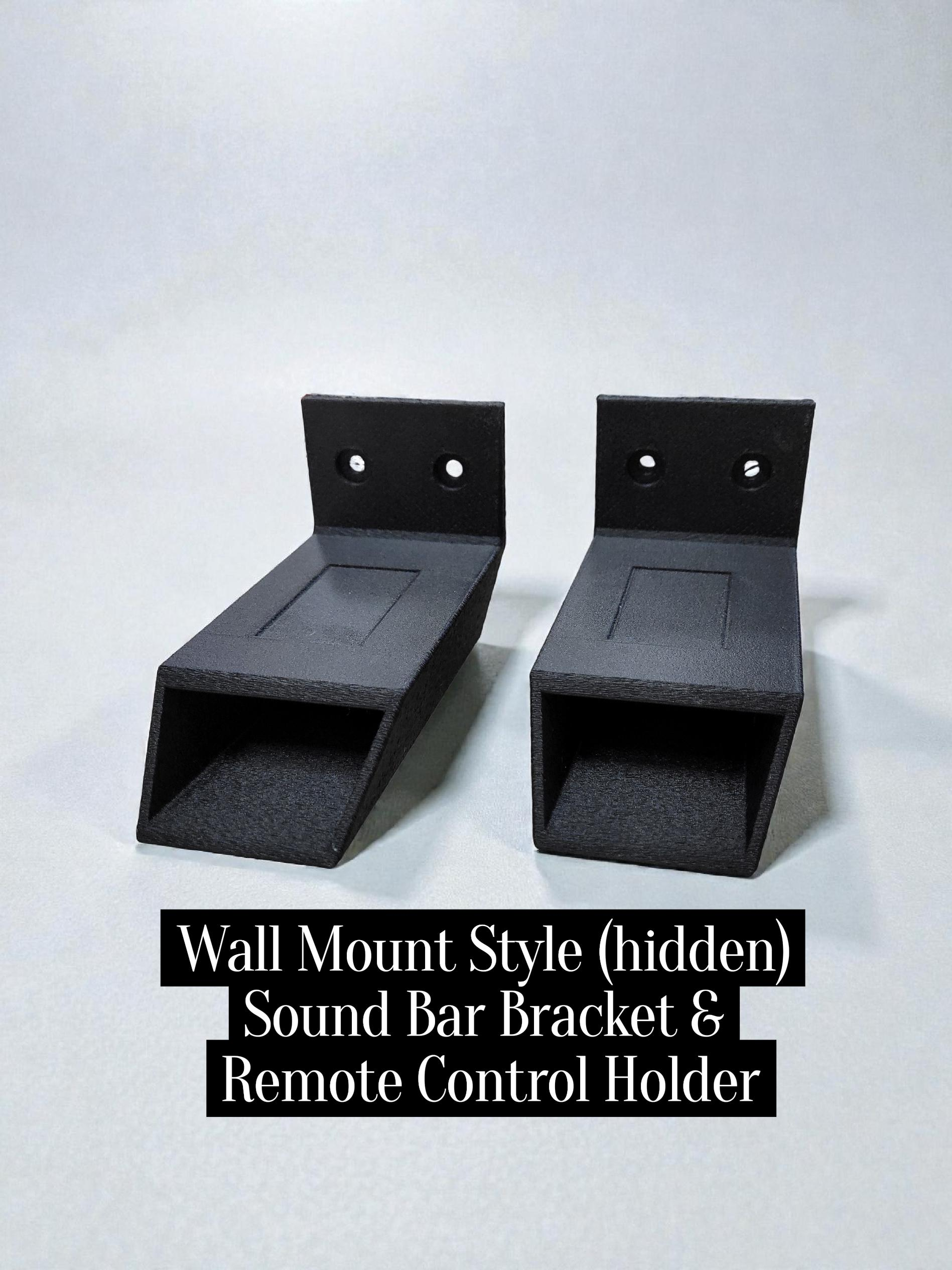 A dual-purpose design that functions as both a hidden wall-mount bracket for your sound bar and a built-in sound bar remote control holder.